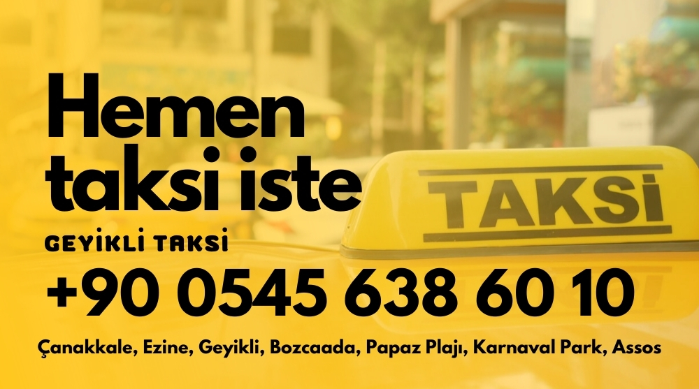 Geyikli Merkez Taksi, Çanakkale Taksi, Ezine Taksi, Geyikli Taksi, Bozcaada Taksi, Papaz plajı Taksi, Karnaval park Taksi, Assos Taksi